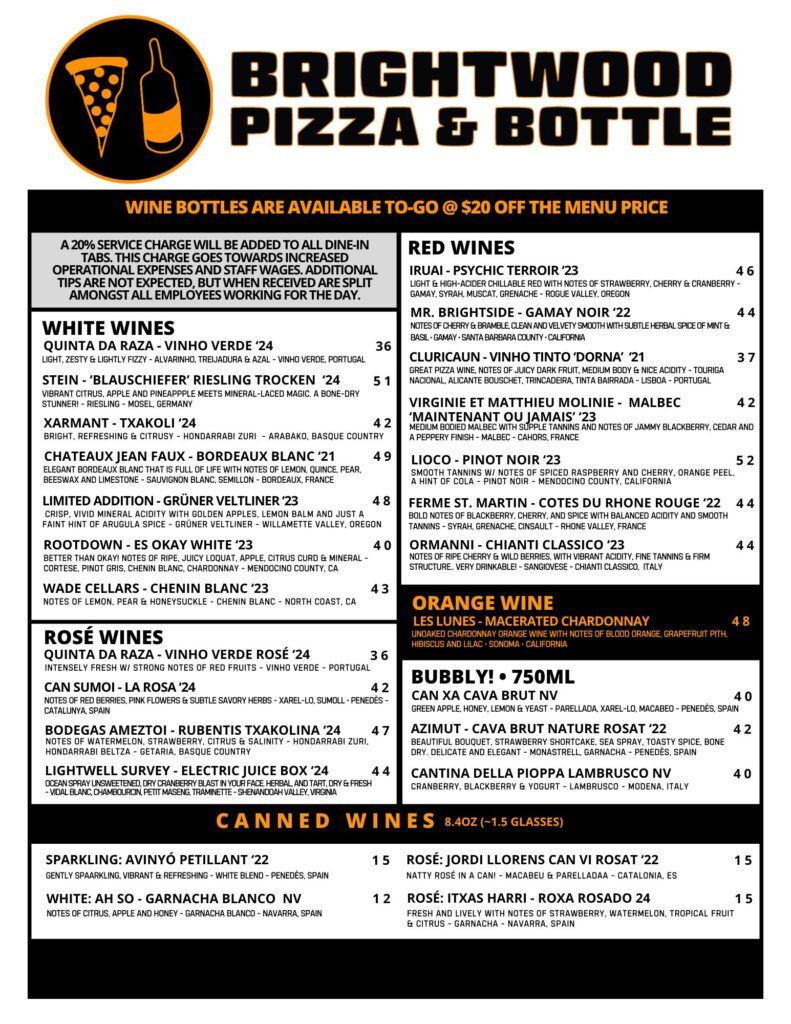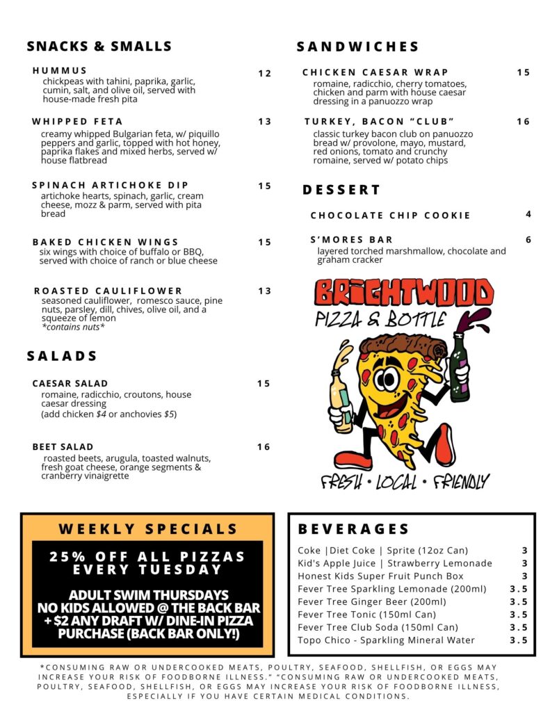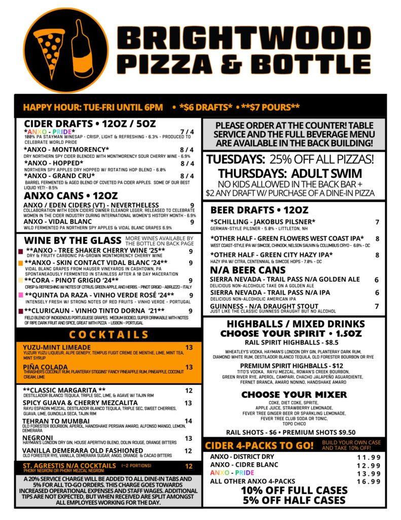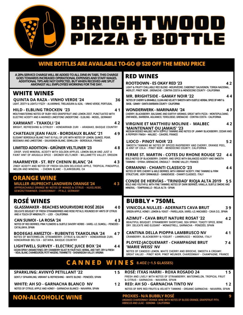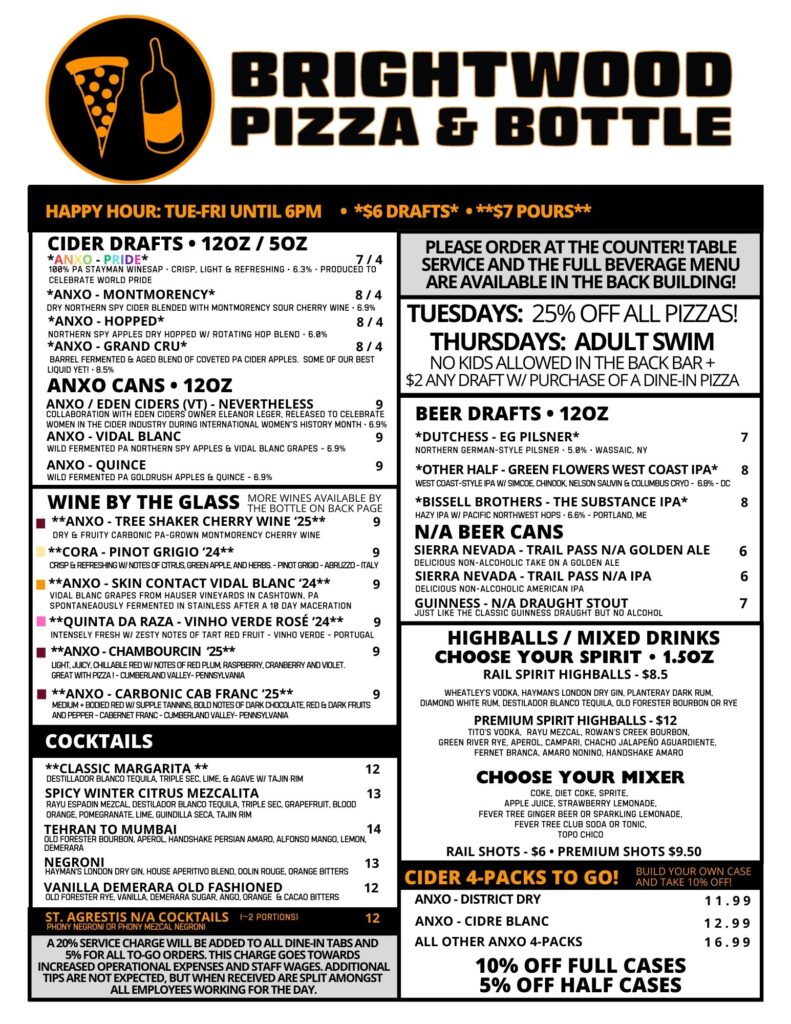 MENUS FOOD BACK BAR FRONT BAR WINE LIST ALL PIZZAS ARE 25% OFF ON TUESDAYS!!! FULL BACK BARDRINK MENUw/ HAPPY HOUR FRONT BARDRINK MENU